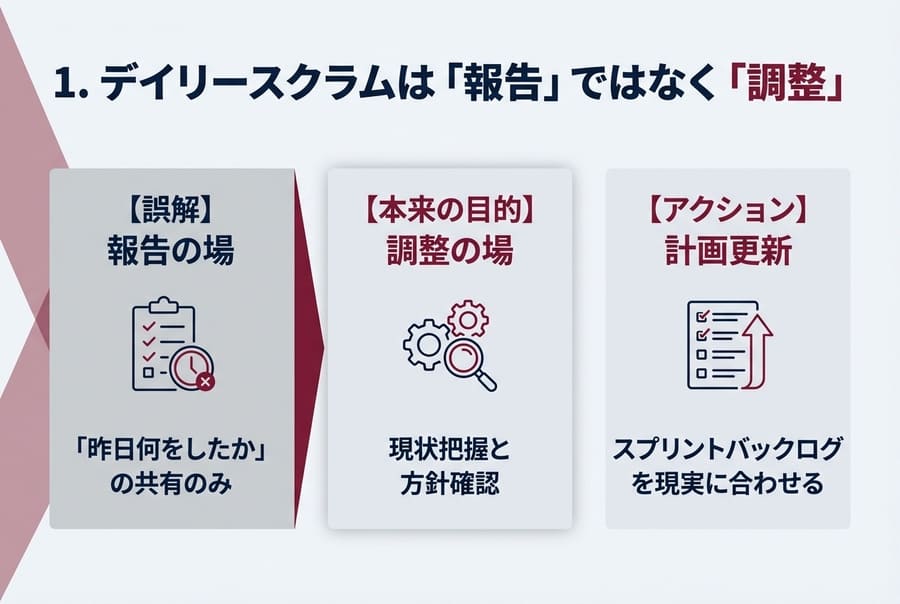 1. デイリースクラムは「報告」ではなく「調整」