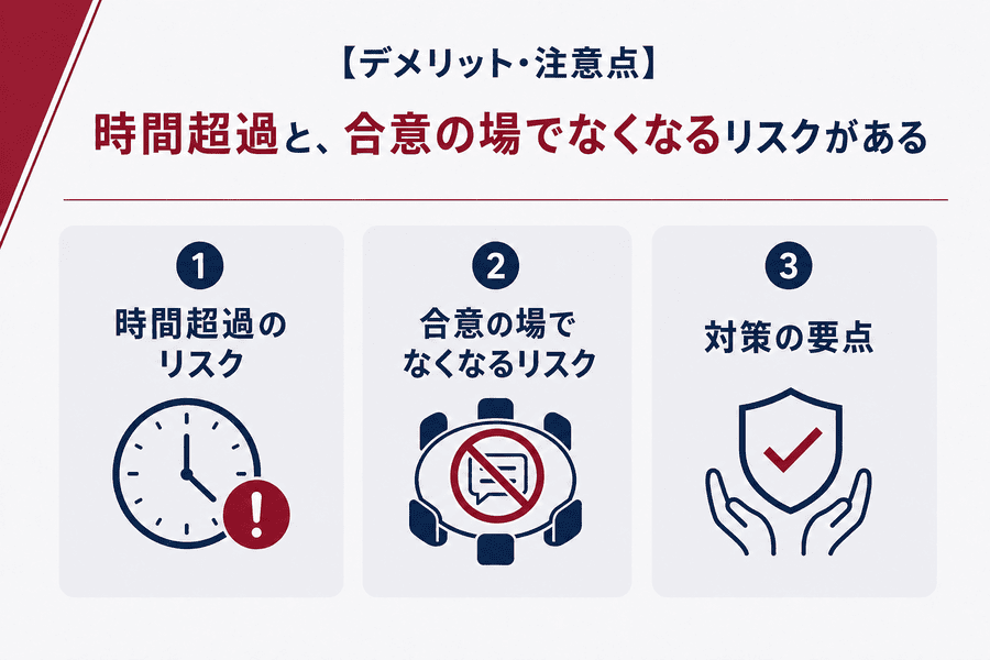 - 【デメリット・注意点】時間超過と、合意の場でなくなるリスクがある