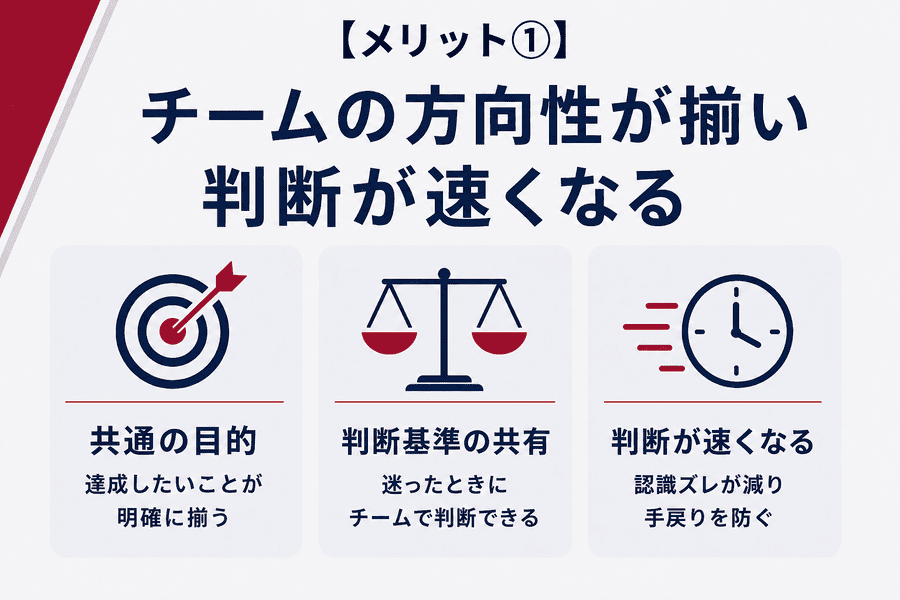 - 【メリット①】チームの方向性が揃い判断が速くなる